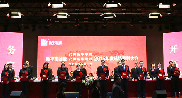 1月20日上午,新華集團暨安徽新華學院、安徽新華學校、合肥新華實驗中學2015年度工作總結表彰大會在安徽新華學院大禮堂隆重召開。集團、學校領導出席大會,與全體教職員工共同回顧了2015年的工作,并明確了2016年的工作要點與發展方向,同時還對2015年度先進個人進行了表彰。大會由新華集團副總裁、安徽新華學院副董事長王孝武主持。