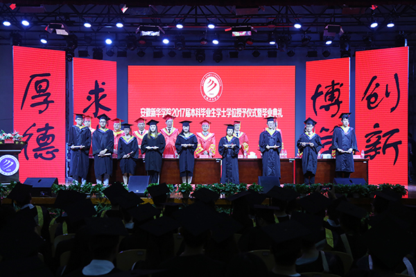 6月21日上午,安徽新華學(xué)院2017屆本科畢業(yè)生學(xué)士學(xué)位授予儀式暨畢業(yè)典禮在校大禮堂隆重舉行。儀式由副校長王麗主持。