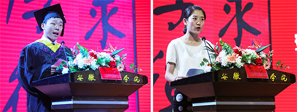 儀式上,畢業(yè)生代表劉錄洋回顧了四年大學(xué)生活的點(diǎn)滴回憶,表達(dá)了對母校培育之恩的無限感激和對這片知識沃土的眷戀之情,表示將通過一點(diǎn)一滴的積累奮斗,努力開創(chuàng)更加美好的未來。教師代表董甜甜向畢業(yè)生們表示祝賀,她肯定了同學(xué)們四年的成長,向全體畢業(yè)生提出了殷切期望,并送上了飽含深情的叮囑和希冀。